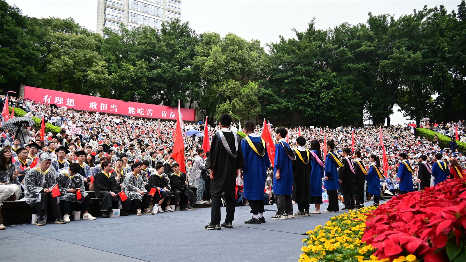 在雄壯的國歌聲中,重慶大學(xué)2024年畢業(yè)典禮暨學(xué)位授予儀式正式開始。