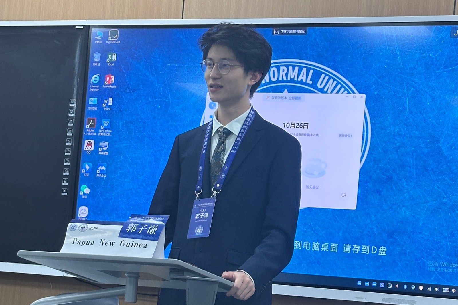 章燕婷與郭子謙在聯合國可持續發展高級別政治論壇(HLPF,United Nations High-level Political Forum on Sustainable Development)“生物多樣性與可持續發展目標”議題中作為巴布亞新幾內亞代表團參加會議,堅持捍衛核心利益,在外來入侵物種、生態保護與經濟發展平衡等問題上深入探索,并積極提出相關的解決方案,呼吁參會代表團重視脆弱國家與弱勢群體利益。前中國聯合國協會副會長兼總干事張丹女士表揚了章燕婷、郭子謙堅持維護自身席位利益的努力,肯定了他們的學術準備與會場表現。