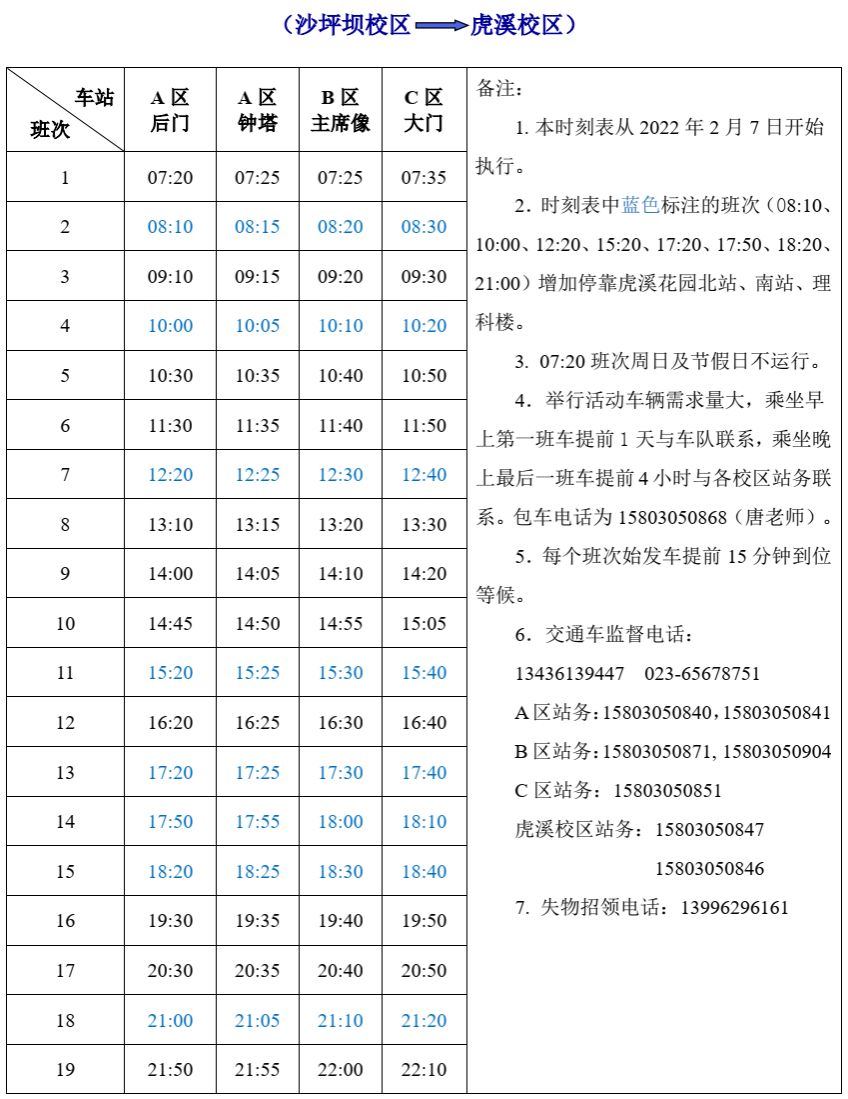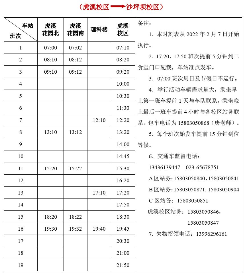 重慶大學交通車時刻表